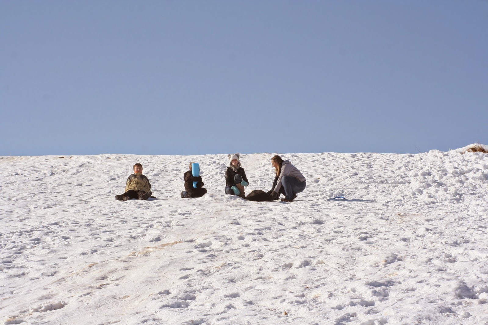 When Amy came to visit with her girls, she and I took the "little kids" (I know. They aren't little anymore. Don't remind me!) SLEDDING! And It was the Perfect day, even if the snow was little hard. ...ouch...